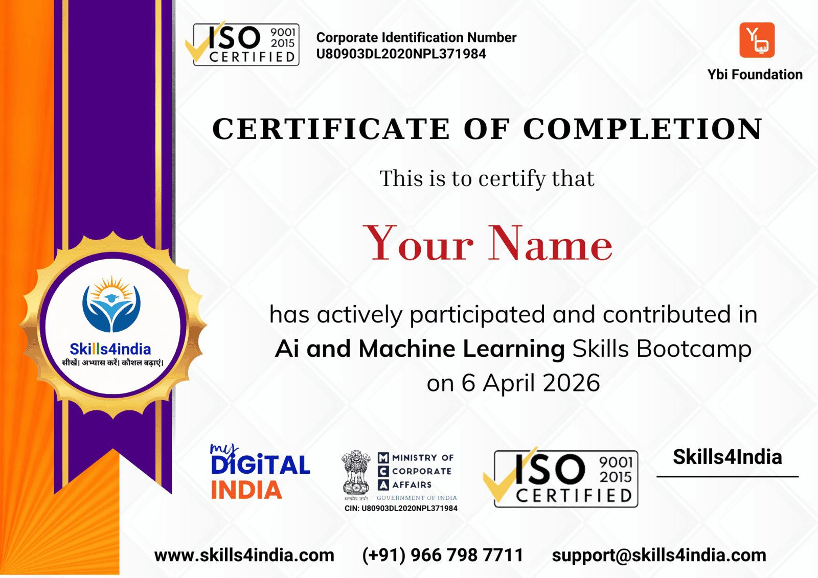FREE Bootcamps at Skills4India provides an unique opportunity to Gain real-world industry experience, with top industry projects with 1 : 1 Mentor Guidance from Industry Experts. After the Completion of course - you will get a Digitally Verified Completion Certificate to boost your resume and accelerate your career success.