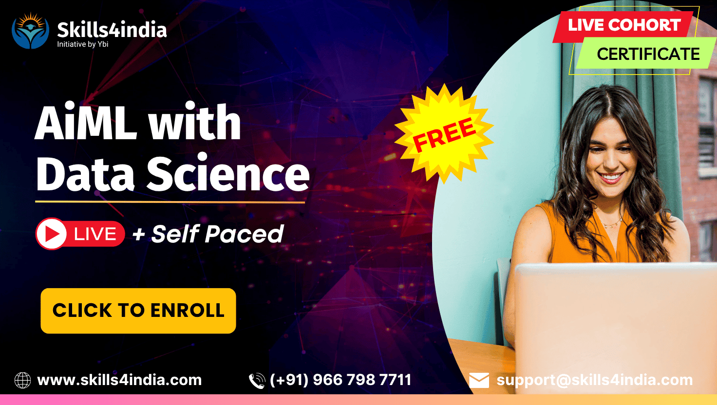 Our team is always with you to support in each and every phase. Feel free to connect us on Call or WhatsApp at (+91) 966 798 7711 or write us at support@skills4india.com